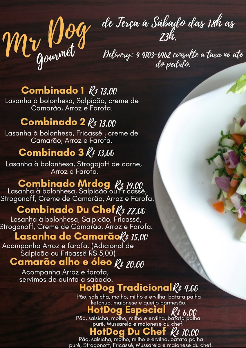 “ O Mr Dog é o melhor lugar para você jantar, a comida é excelente, já provei todos os combinados e o cachorro quente, tudo top. ”